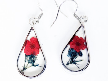Náušnice kapky s červenou květinou a zeleným stonkem v chirurgické oceli
